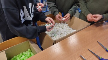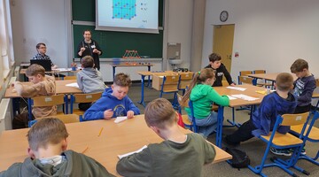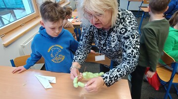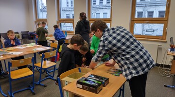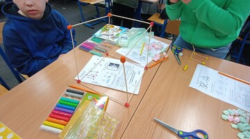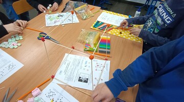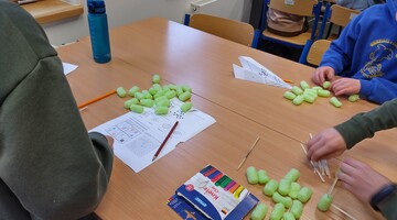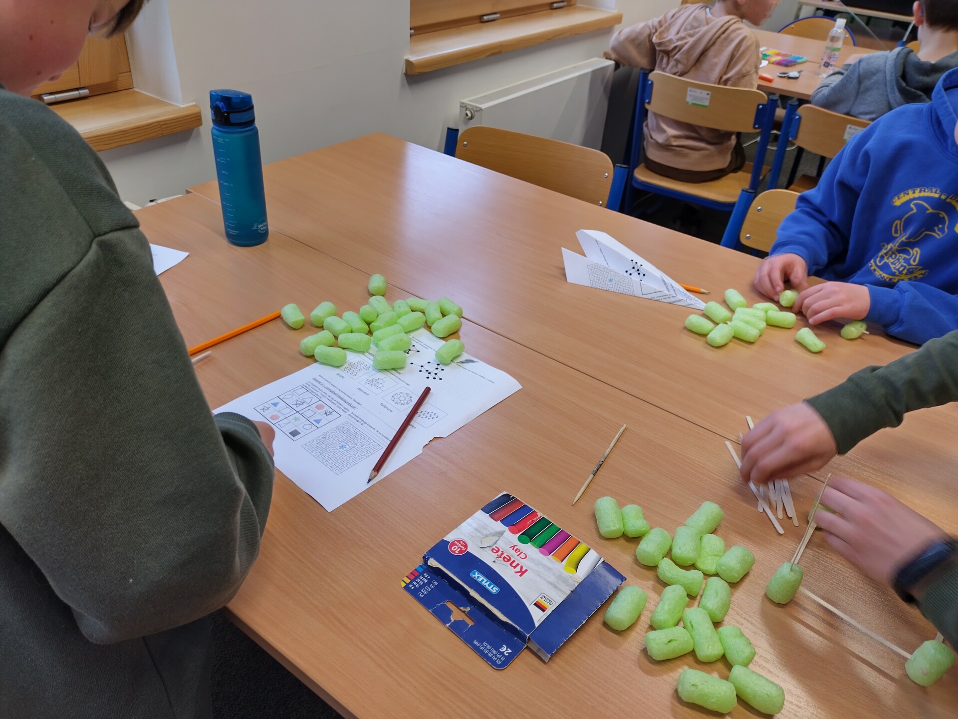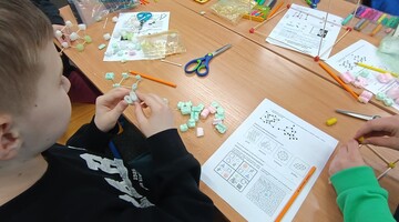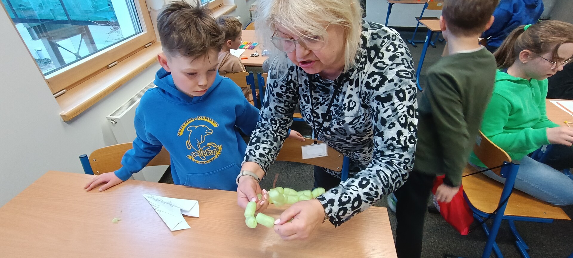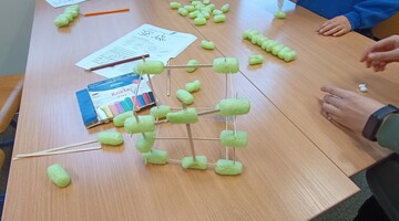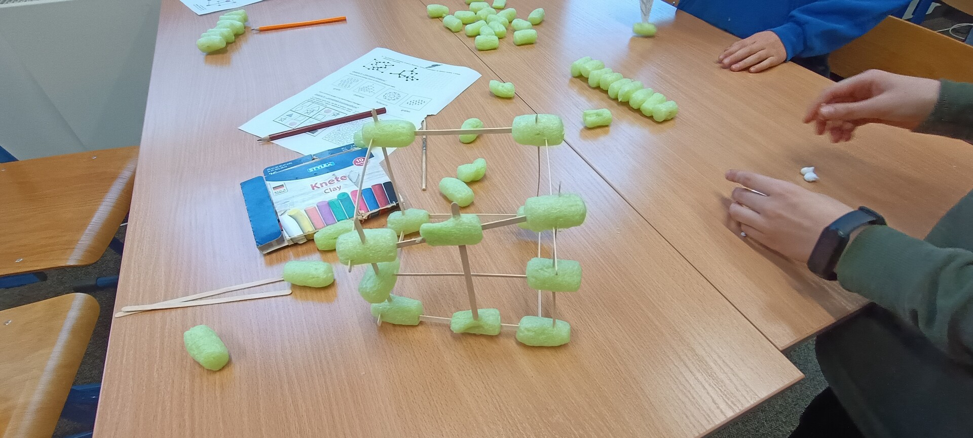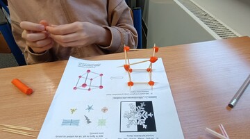 Po rozpoznaniu tych charakterystycznych wzorów, KMO-wcy próbowali odtworzyć je, stosując proste elementy symetrii. Korzystając z pianek i plasteliny (jako obiektów powielanych w przestrzeni) oraz patyczków i drucików miedzianych (jako wiązań), nasi „architekci molekularni” odkrywali reguły translacji, odbicia i obrotu. Mieli też okazję przeanalizować wewnętrzną strukturę pospolitych minerałów - od tych najtwardszych, po najbardziej kruche.