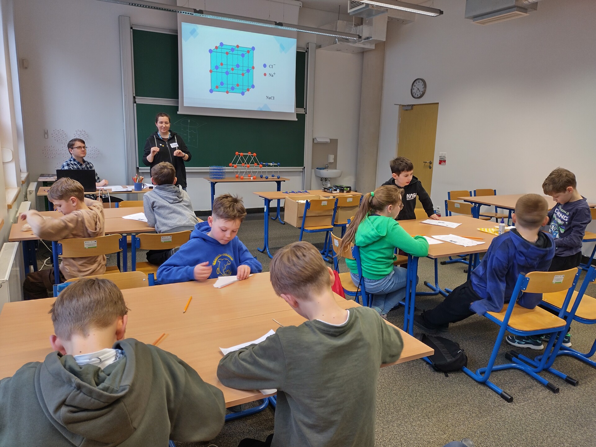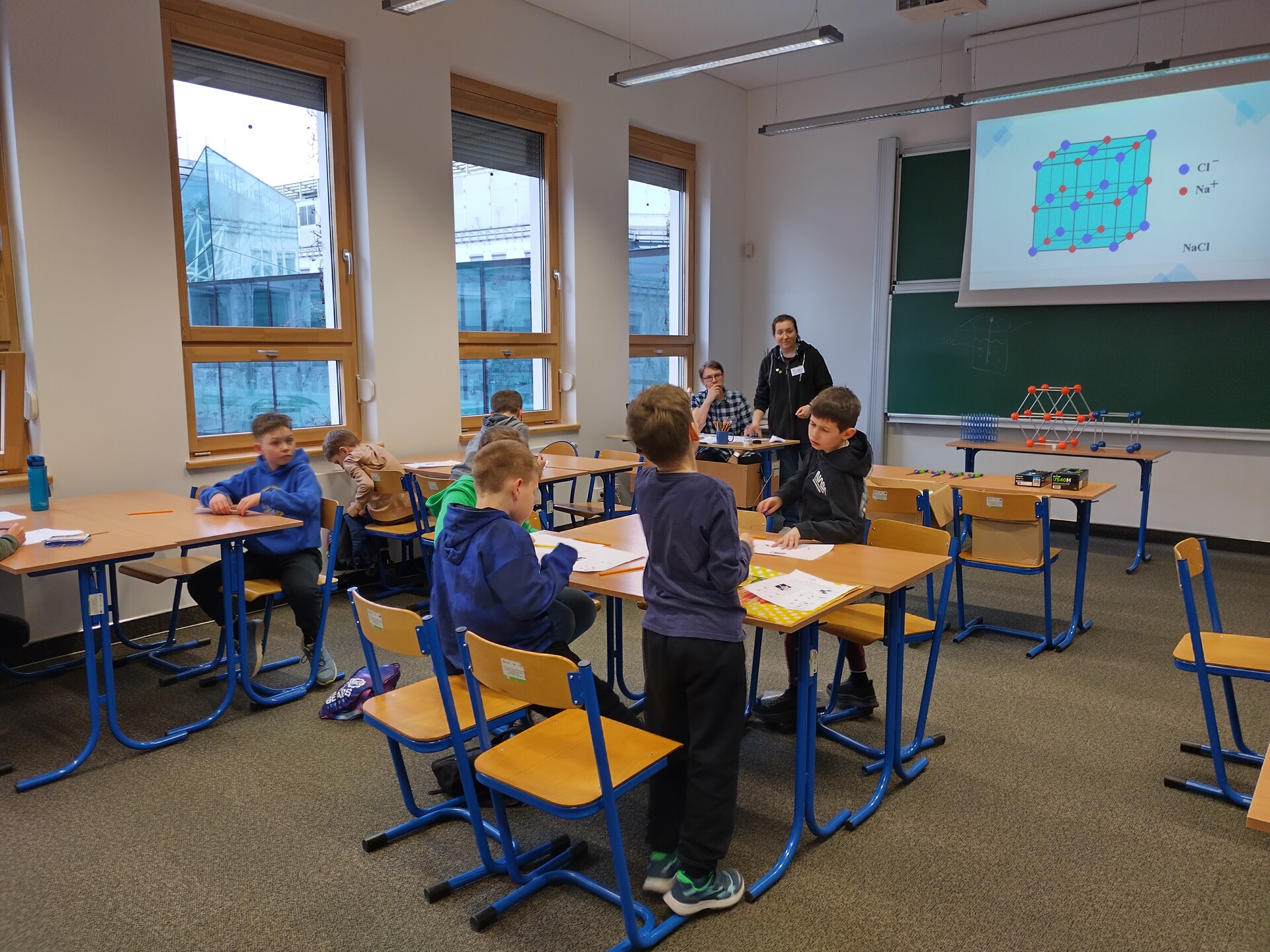 Miłośnicy fizyki z Klubu Młodego Odkrywcy o zawołaniu „Newton, Einstein a teraz My” w dniu 25 marca 2026 r. przyglądali się materiałom samoporządkującym się. Są to substancje wykazujące powtarzające się schematy ułożenia atomów, cząsteczek, prostych łańcuchów, a nawet skomplikowanych spiral jak to bywa w strukturach organicznych.